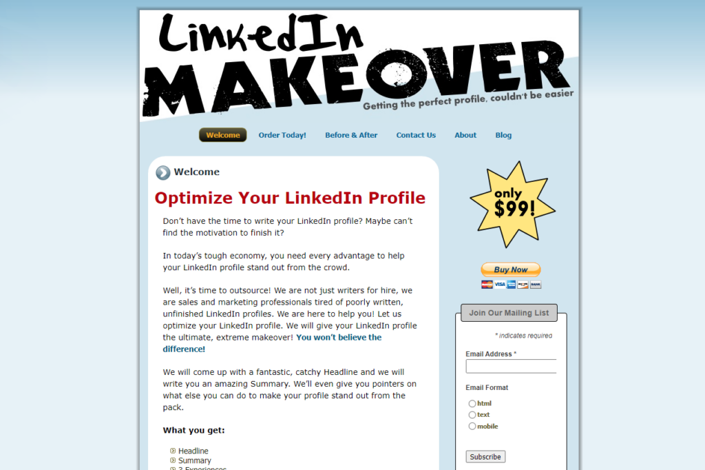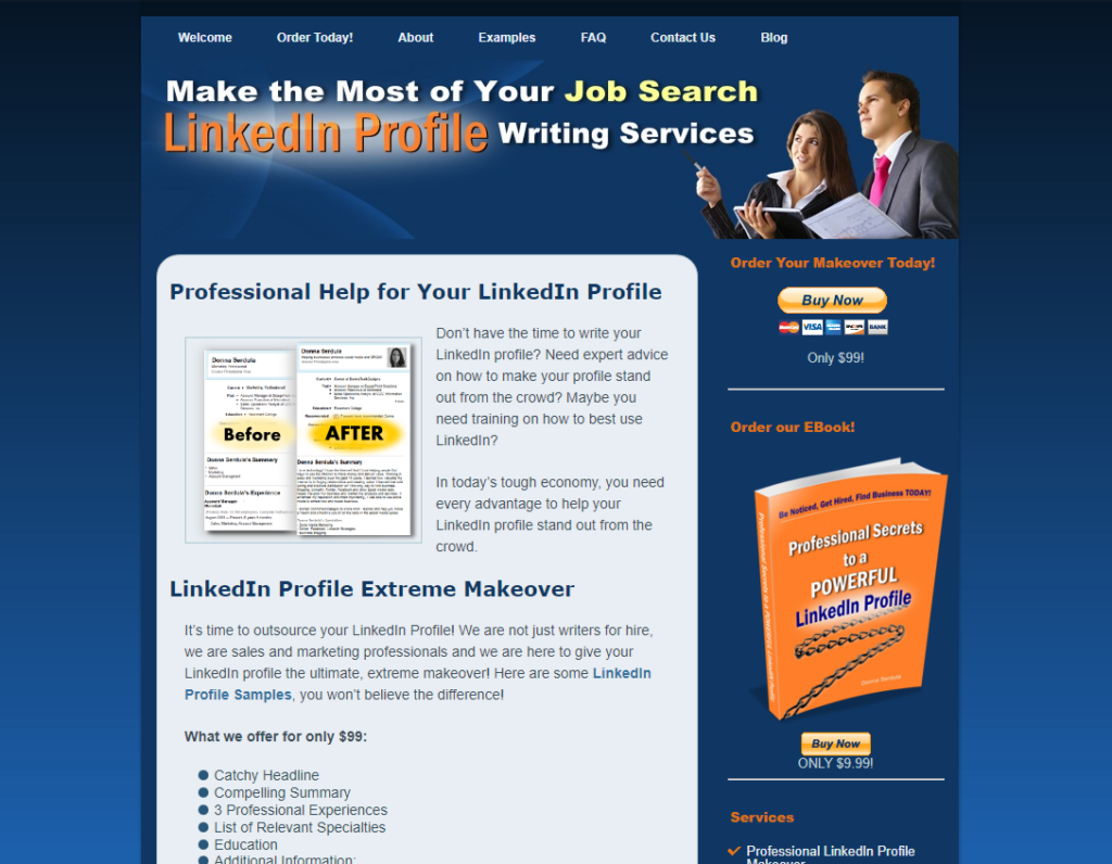 Before we talk about that decision and process, let’s take a stroll down memory lane. Here is the very first design for LinkedIn-Makeover.com: